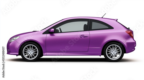 Lilac hatchback car, rendered in photorealistic style with highly reflective surfaces
