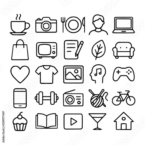 Line Art Icon Set - Lifestyle and Daily Objects