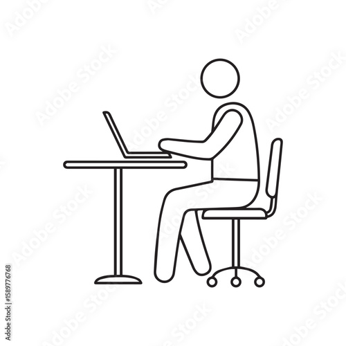 Line Art Illustration of a Person Working on a Laptop at a Desk with Chair in a Minimalist Style