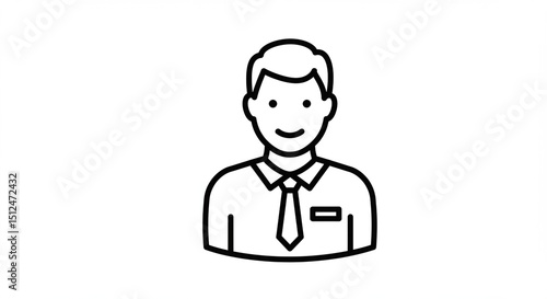 Line art man smiling wearing shirt tie on white background