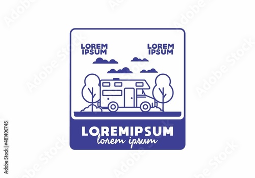 Line art motorhome flat illustration