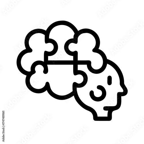 Line art of a brain and face connected by puzzle pieces