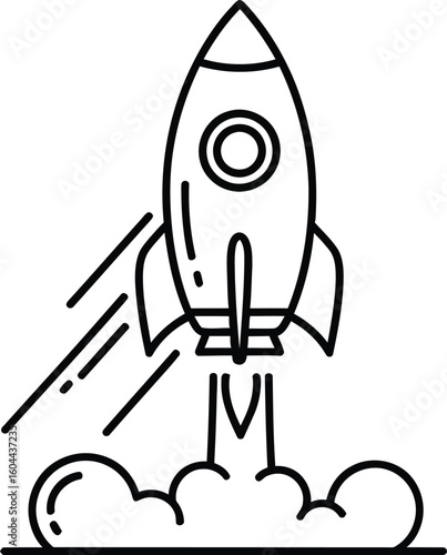 Line Art Rocket Startup Launch Icon