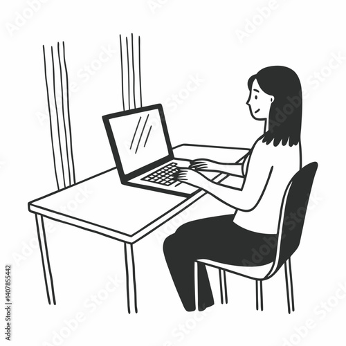 Line Art Telework, remote work, women