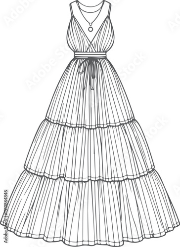 line art Tiered Maxi Dress fashion illustration drawing template.
