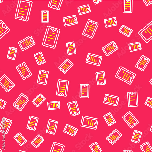 Line Clipboard with checklist icon isolated seamless pattern on red background. Control list symbol. Survey poll or questionnaire feedback form. Vector