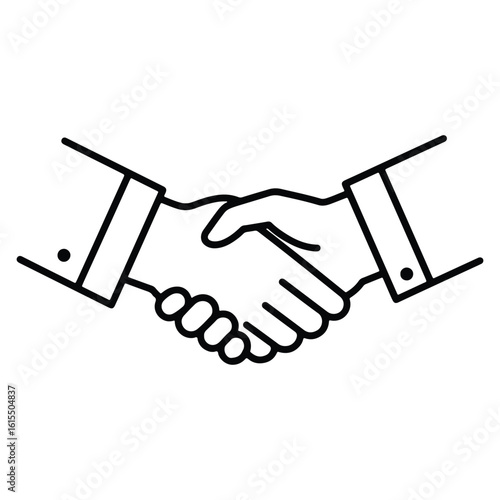 Line drawing of two hands shaking representing business agreement or successful partnership