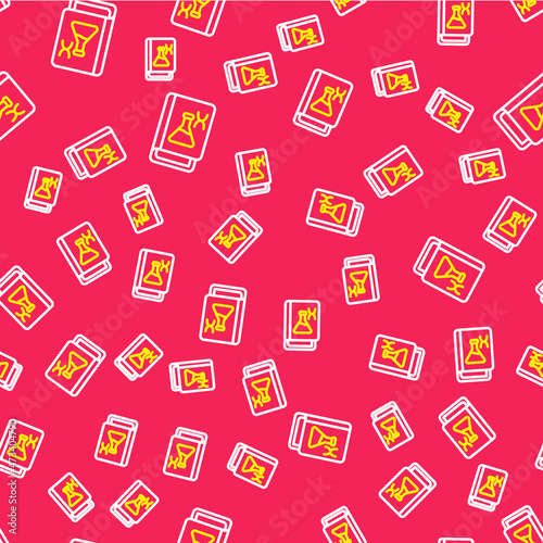Line Genetic engineering book icon isolated seamless pattern on red background. DNA symbol. Vector