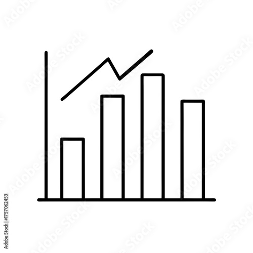 Line graph with bar chart showing upward trend line on transparent background
