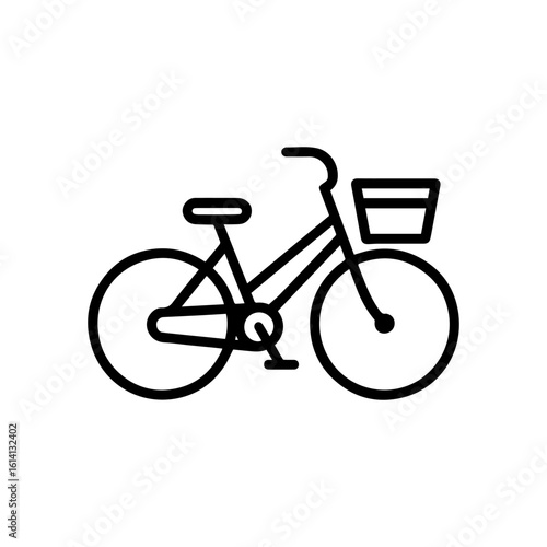 line icon Bicycle with basket vector on white background Vector line icon on white background
