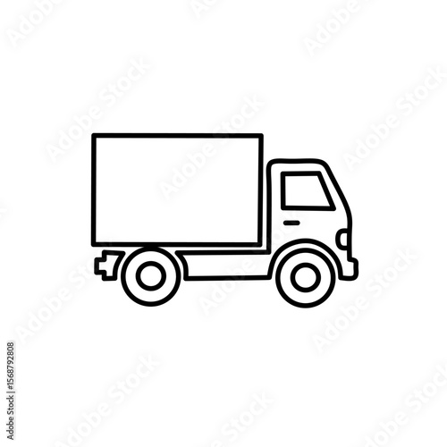 line icon of a box delivery truck in black outline style. Simple and clean transport vehicle illustration for logistics, shipping, and commercial design concepts