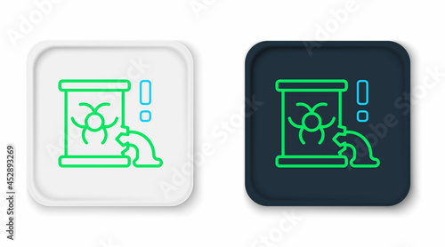 Line Radioactive waste in barrel icon isolated on white background. Barrel with radioactive and toxic substance is spilled. Colorful outline concept. Vector