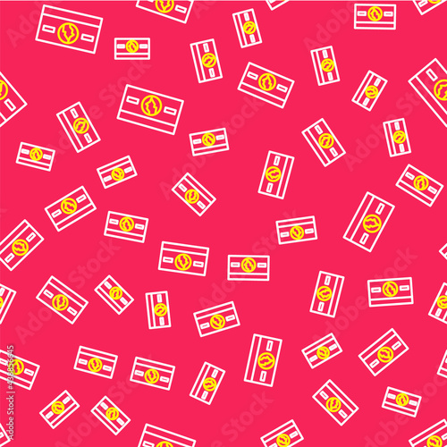 Line Stacks paper money cash icon isolated seamless pattern on red background. Money banknotes stacks. Bill currency. Vector