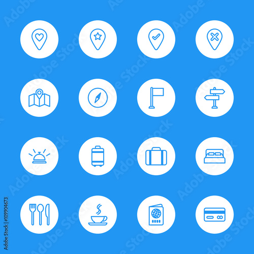 line travel icon set on white circle for web design, user interface (UI), infographic and mobile application (apps)