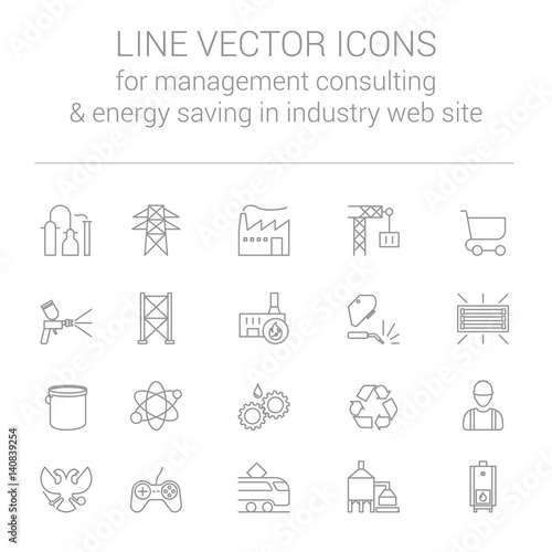 Line vector icons for management consulting and energy saving in industry web site
