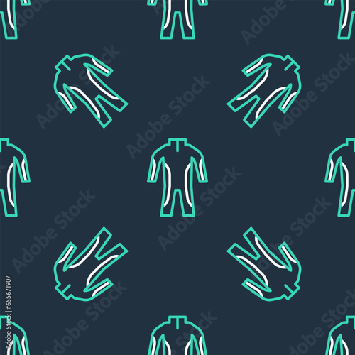Line Wetsuit for scuba diving icon isolated seamless pattern on black background. Diving underwater equipment. Vector