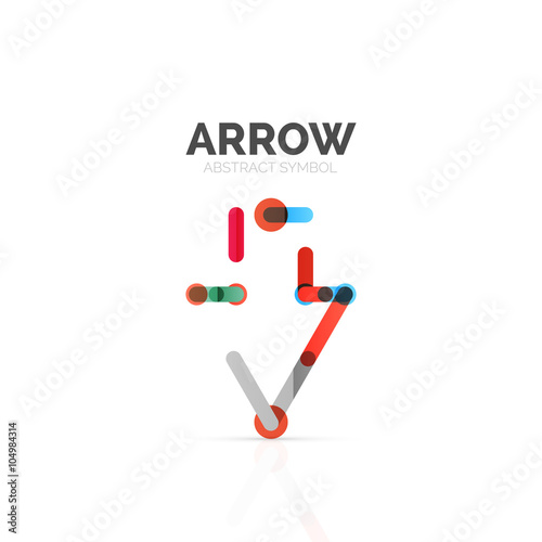Linear arrow abstract logo, connected multicolored segments of lines in directional pointer figure
