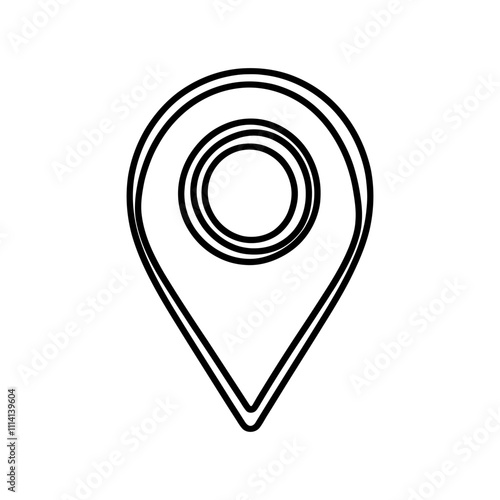 Linear location pin icon, isolated on white background. Black hand drawn map pin symbol. Vector illustration