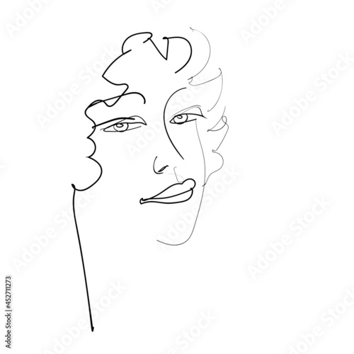 Linear, vector drawing by hand. Sketch, an abstract face of a young woman.