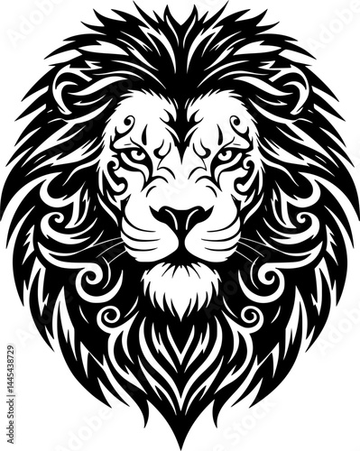 Lion head, an original illustration in a retro woodcut etching vintage style