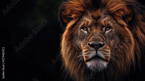 Lion's Majestic Gaze Close Up with Warm Colors and Black Background
