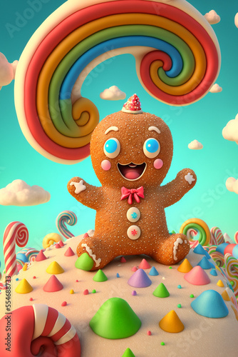 little cute gingerbread man in candyland