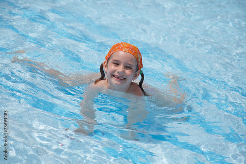 little girl in pool. blue water