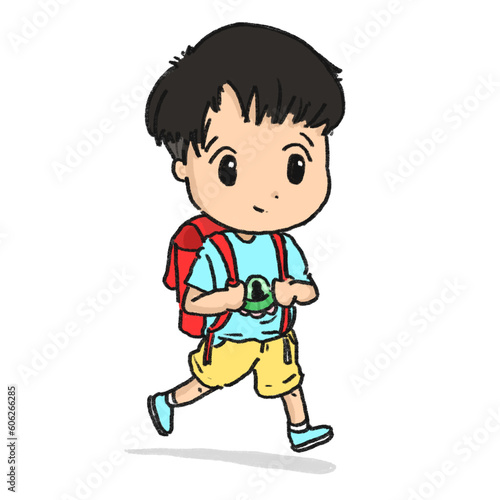 Little student boy walking character illustration.