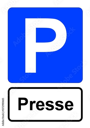 llustration eines blauen Parkplatzschildes mit der Aufschrift "Presse"