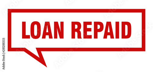 loan repaid sign. loan repaid square speech bubble. loan repaid