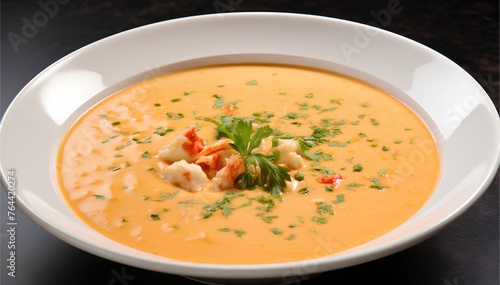 Lobster Bisque, classic creamy and smooth, seasoned soup from lobster and aromatics, cinematic food photo