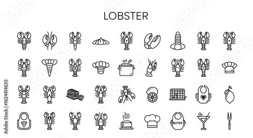 Lobster Seafood Icons: Solid Black Glyphs for Luxury Dining