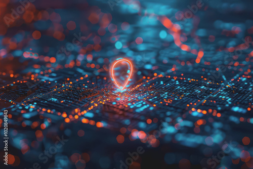 Location icons of GPS navigation, Global 5g high-speed internet connection, and Big data analysis.