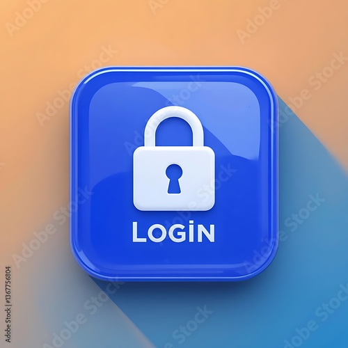 Lock icon on a blue button with key and keyhole symbol representing security and protection