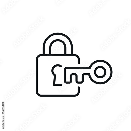 Lock with key linear icon. Problem solving. Thin line customizable illustration. Contour symbol. Vector isolated outline drawing. Editable stroke
