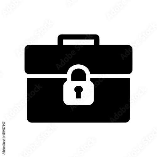 Locked briefcase icon, secure business portfolio symbol. Data protection and confidential documents graphic, corporate information safety and privacy illustration design.