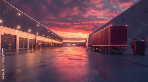 Logistic center cargo trucks transportation shipping lorry delivery freight semi-truck road carrier warehouse storage vehicle load shipment delivery container van fast transport commercial business