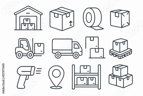 Logistics and Distribution Icons Set: Shipping, Warehousing, and Transportation Symbols