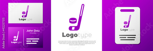 Logotype Ice hockey stick and puck icon isolated on white background. Logo design template element. Vector.