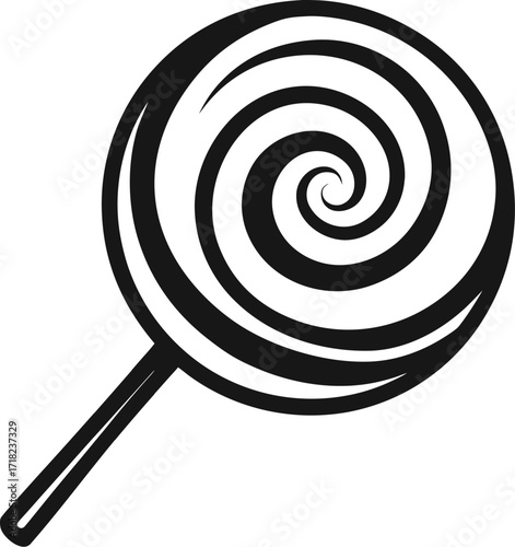 Lollipop with swirl, vector line art icon ,black and white , white background