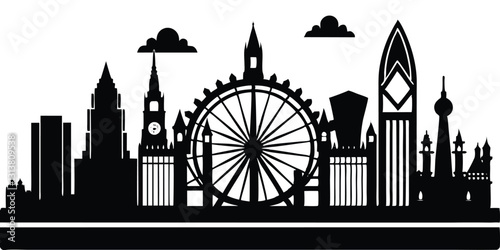 London Skyline Silhouette and Famous Landmarks with Reflections
