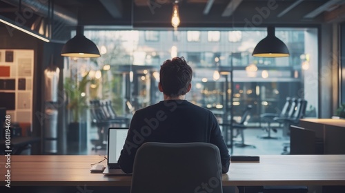 Lone Entrepreneur Working Late in Cozy Cafe