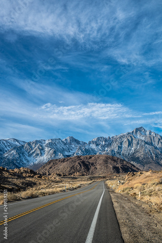 Lone Pine, California morning view of Mount Whitney from Whitney Portal road in Lone pine