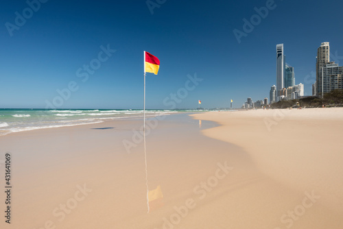 Lone surf lifesaving flag on empty beach - Gold Coast