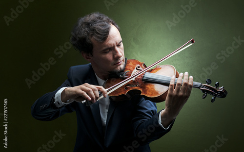 Lonely violinist composing on cello with nothing around