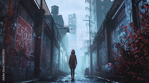 Lonely Walk Through Urban Alley