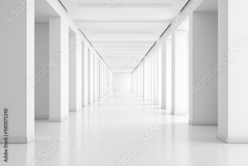 Long, empty hallway with white walls and white floor