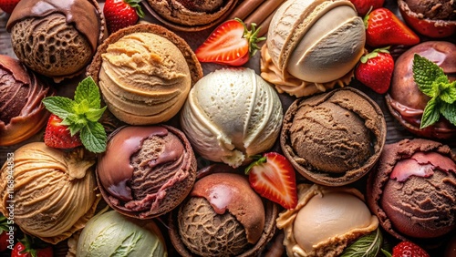 Long exposure captures the creamy, colorful swirls of Neapolitan ice cream, a delectable dessert.