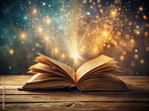 Long Exposure Photo of Ancient Book Pages, Illuminated, Spiritual, Religious Theme