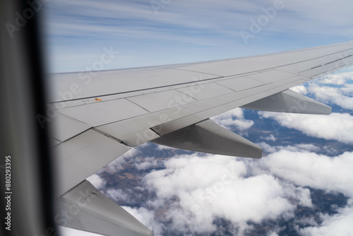 looking out plane window at the clouds above australia over the wing